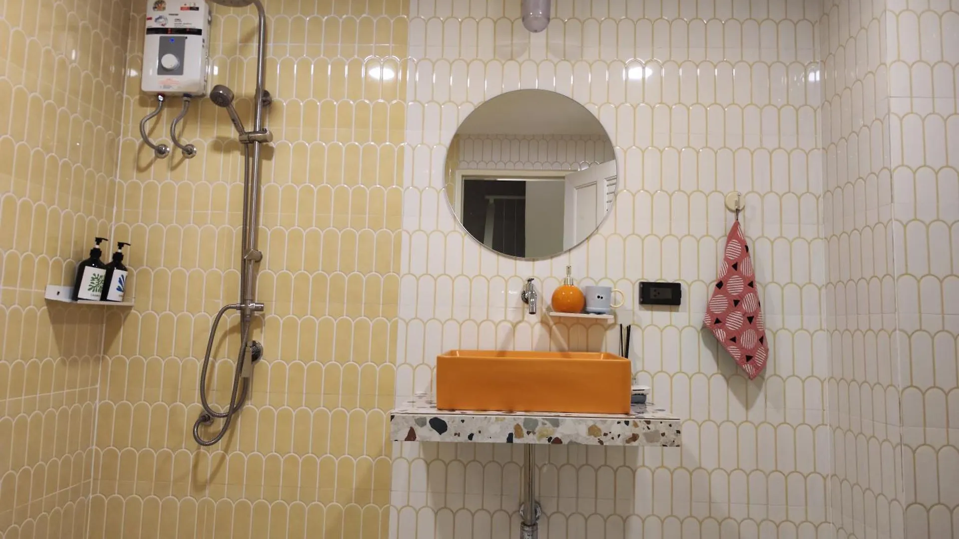 В ванной комнате также есть отдельный туалет и душ. Кроме того, для удобства гостей предусмотрены фен, полотенца и тапочки.